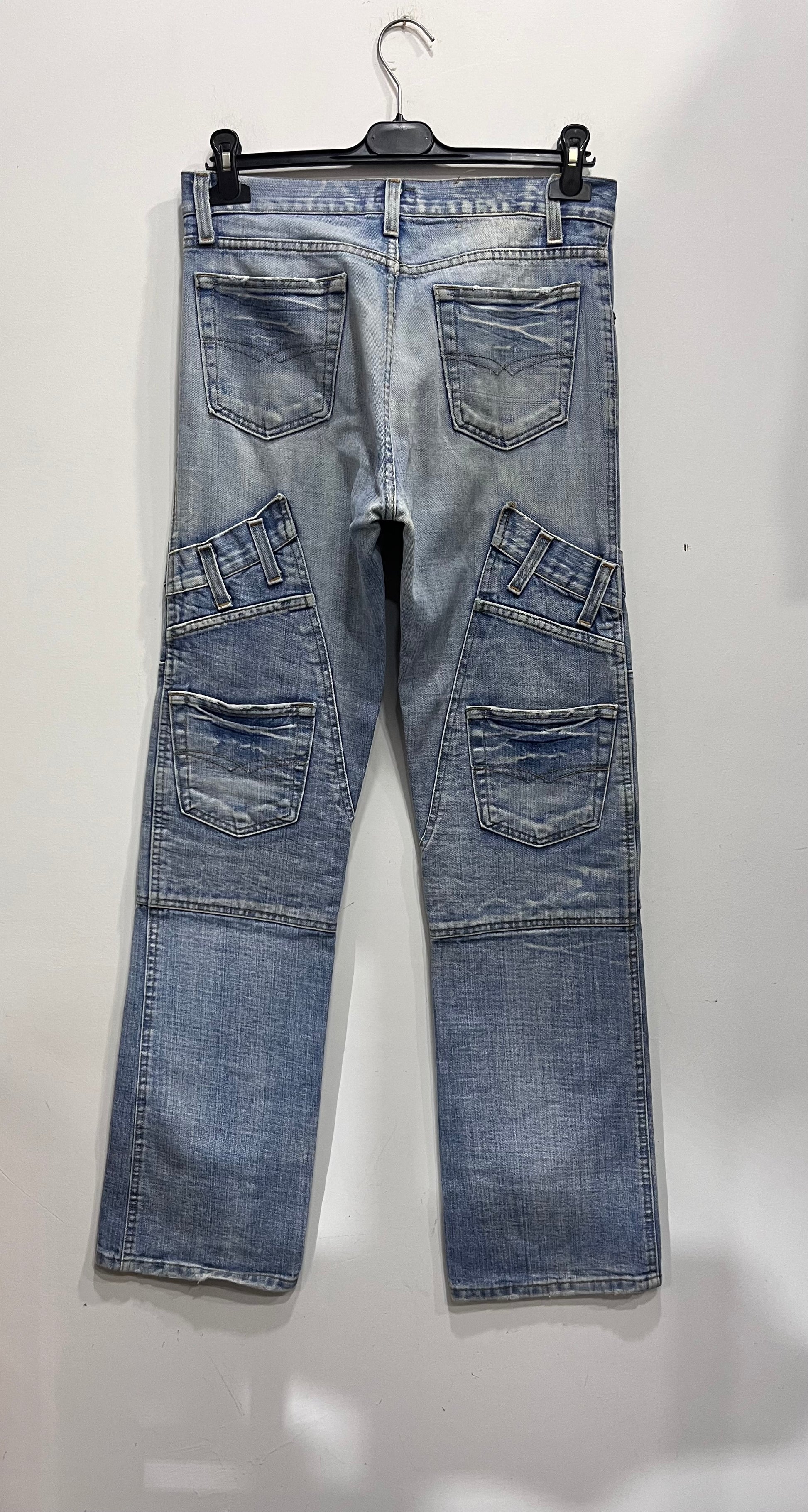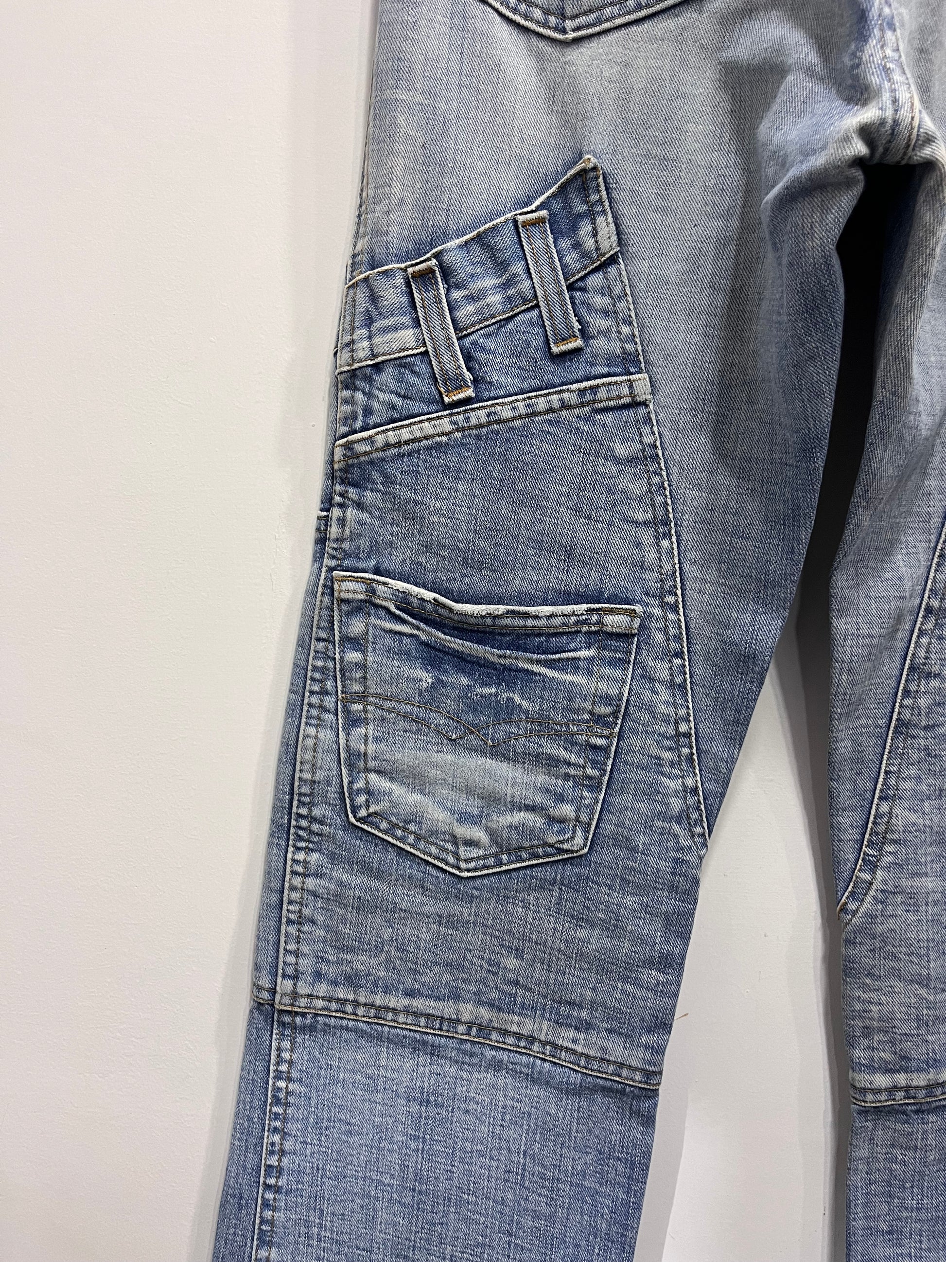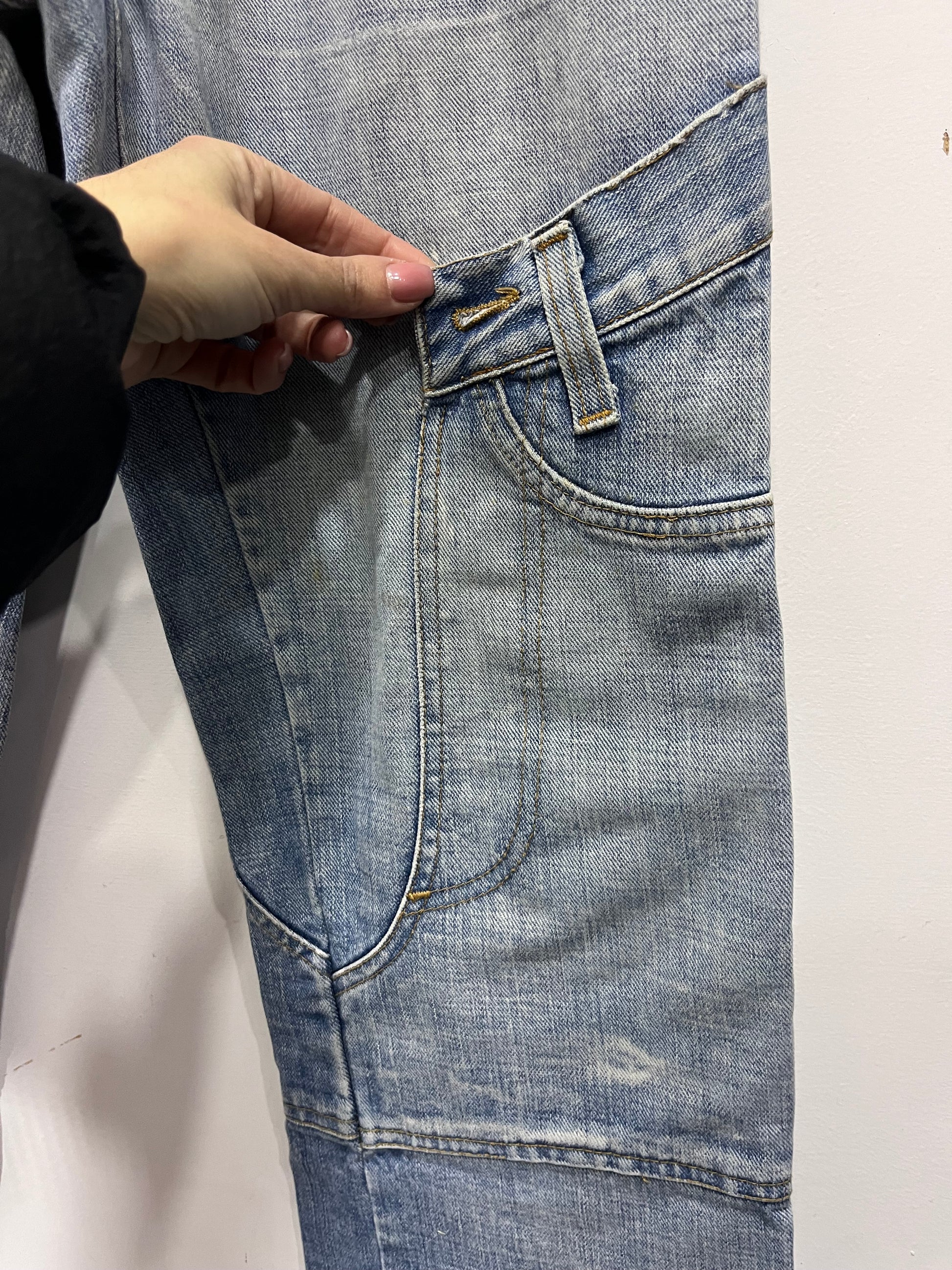 jeans lavaggio chiaro con tasche sui laterali delle gambe