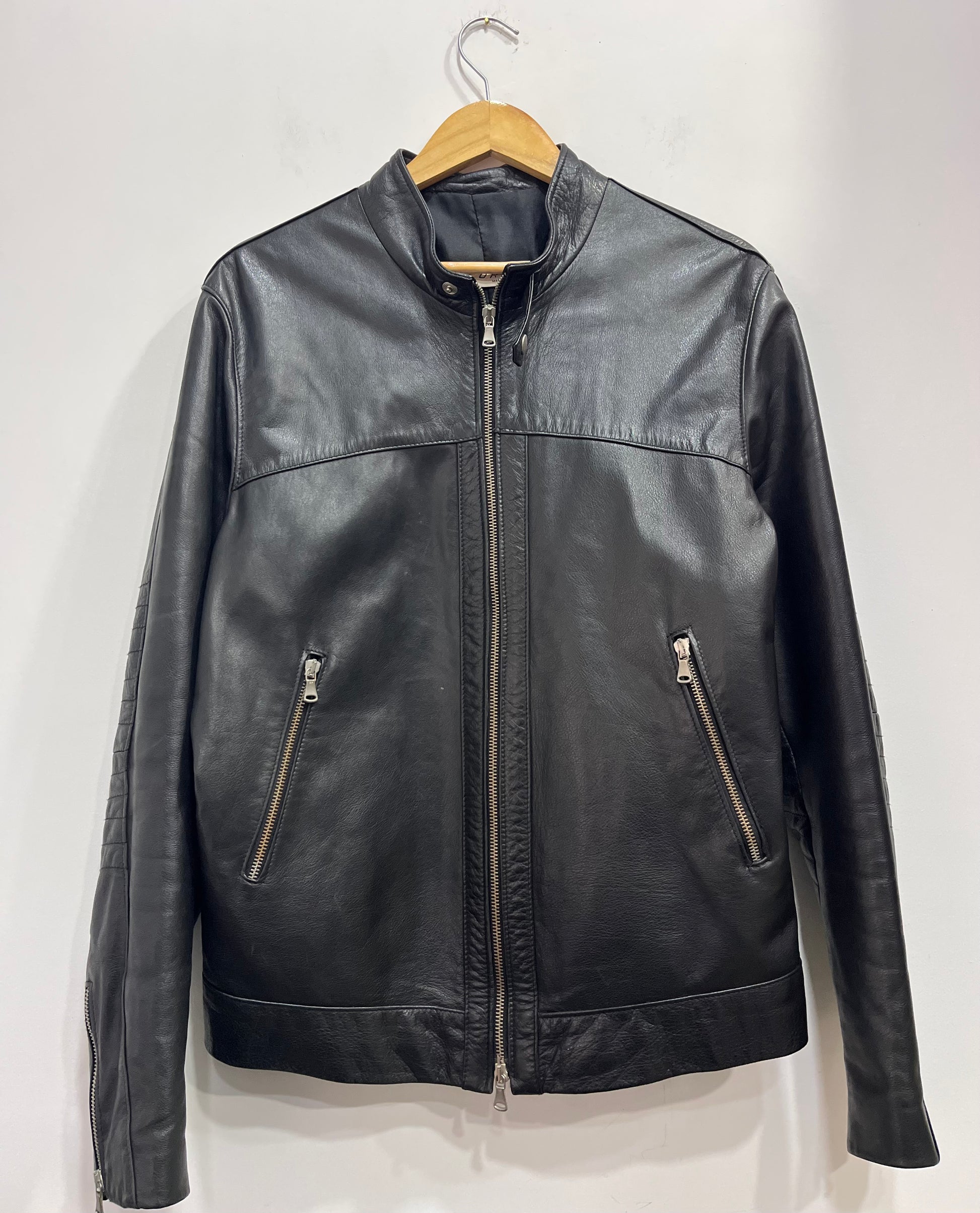 giacca in vera pelle, con colletto alla coreana